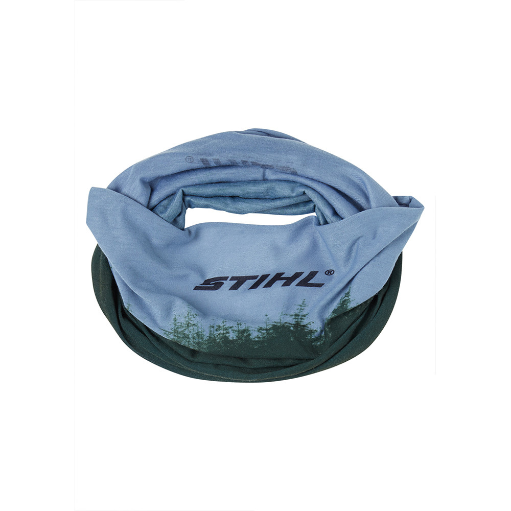A praktikus kendő többféle képpen hordható. Felhasználható szükség szerint kendőként, sapkaként, fejpántként vagy akár sálként is. Erdő mintával és STIHL logóval.